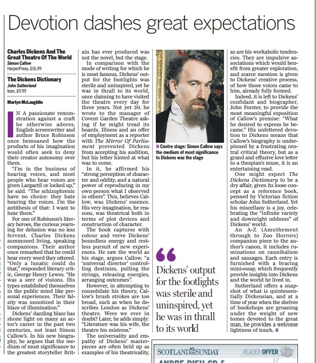 However, in attempting to consolidate his theory, Callow’s brush strokes are too broad, such as when he describes London as Dickens’ theatre. Were we ever in doubt? Later, he adds simply: “Literature was his wife, the theatre his mistress.”