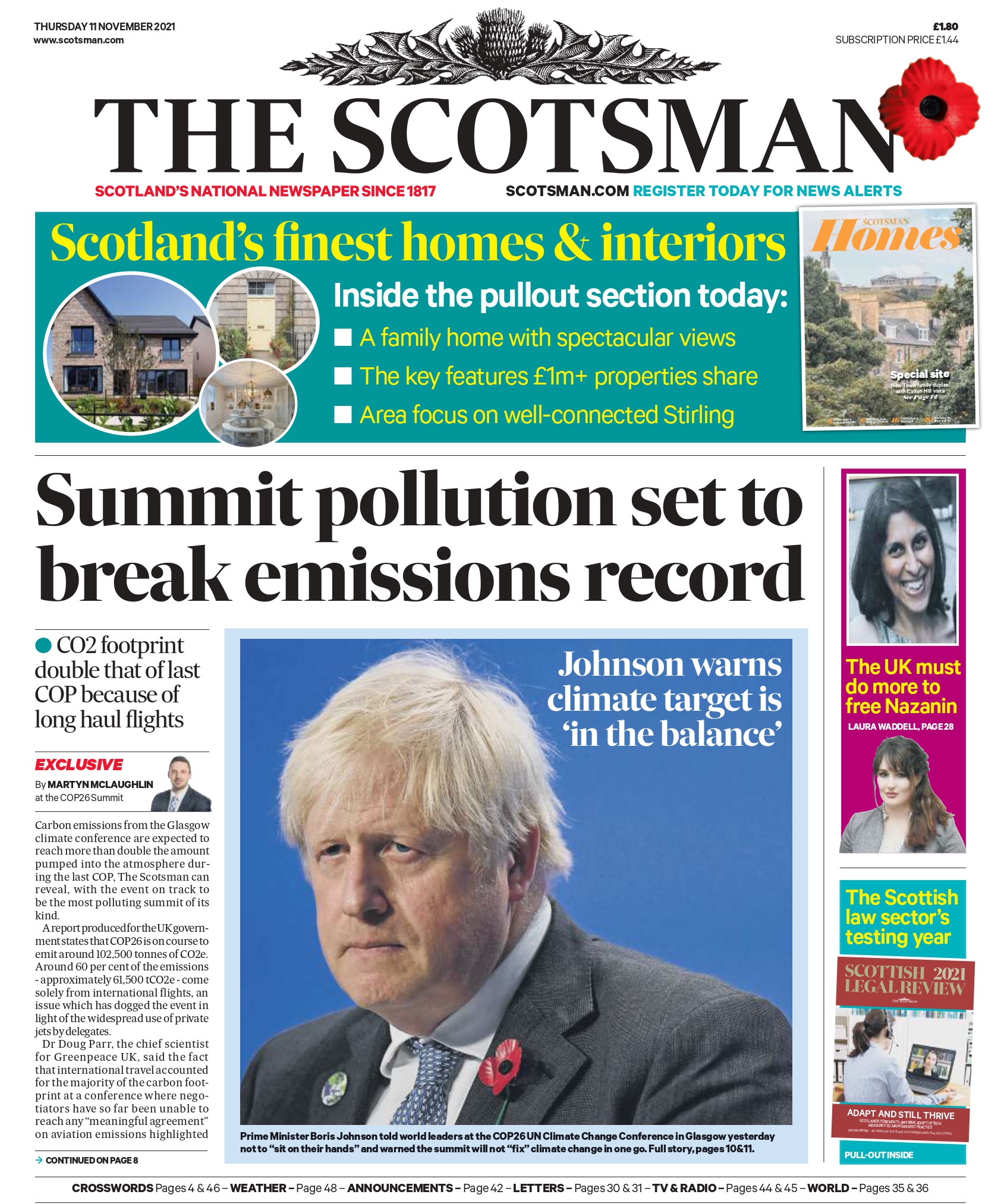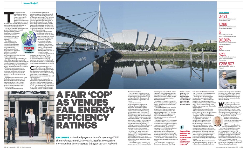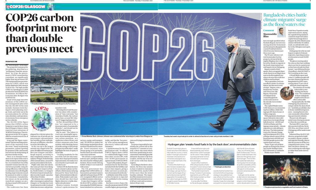 Various exclusives about the COP26 climate summit, published in The Scotsman and Scotland on Sunday. Copyright belongs to the respective publications. Click the blue links where applicable to read the original web version of the stories.