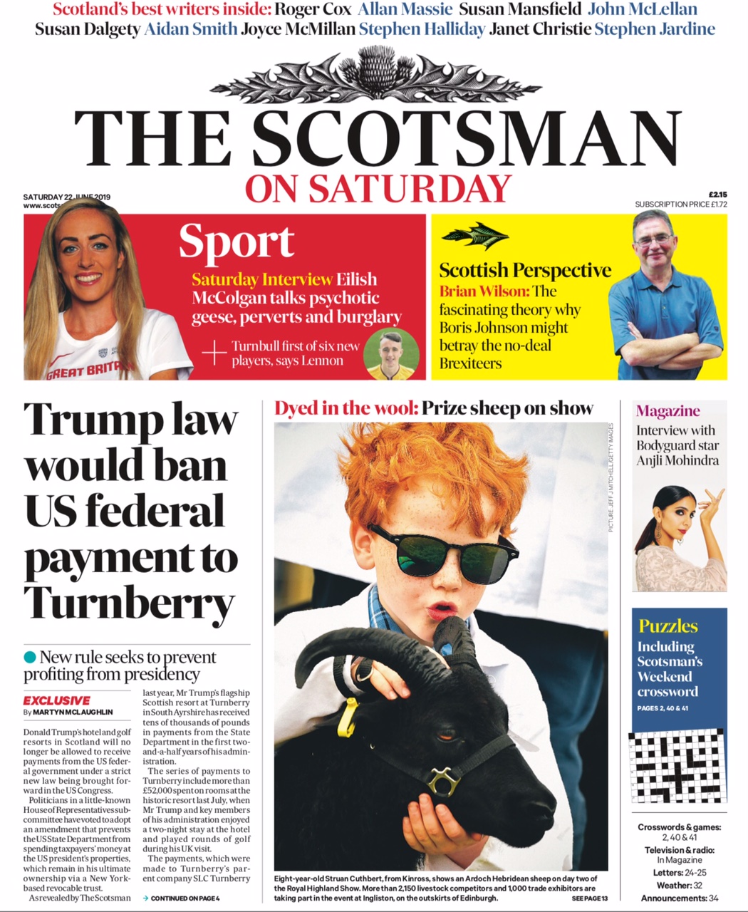 Crackdown on US State Department payments to Donald Trump’s firms – from The Scotsman – An investigation into how Donald Trump was refused £38m in financing from the Bank of Scotland as he attempted to create his inaugural international hotel resort.