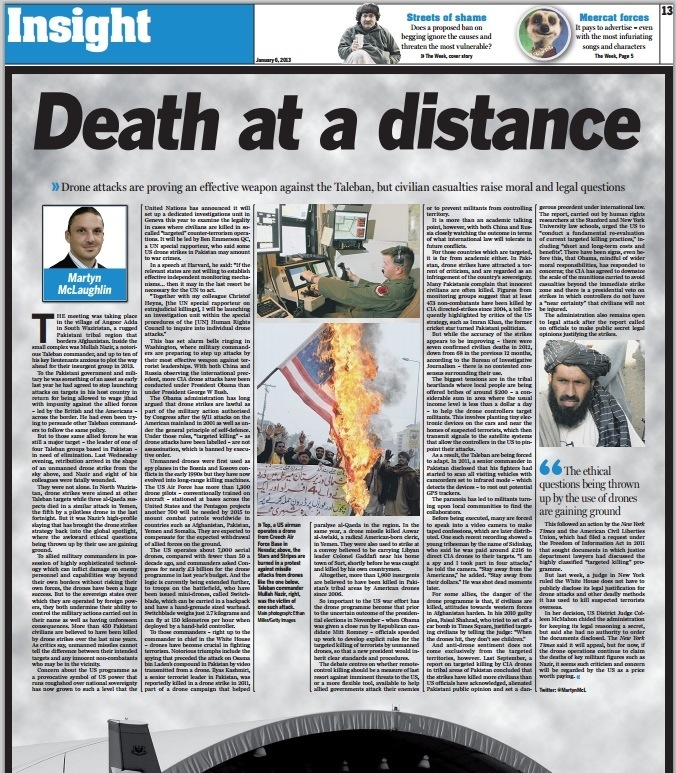 ‘Death at a Distance’ from Scotland on Sunday. The increasing use of unmanned drones by the US.