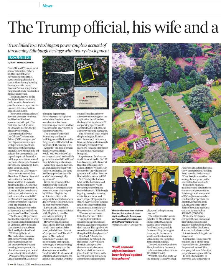 Steven Mnuchin’s ties to luxury Edinburgh development – from Scotland on Sunday