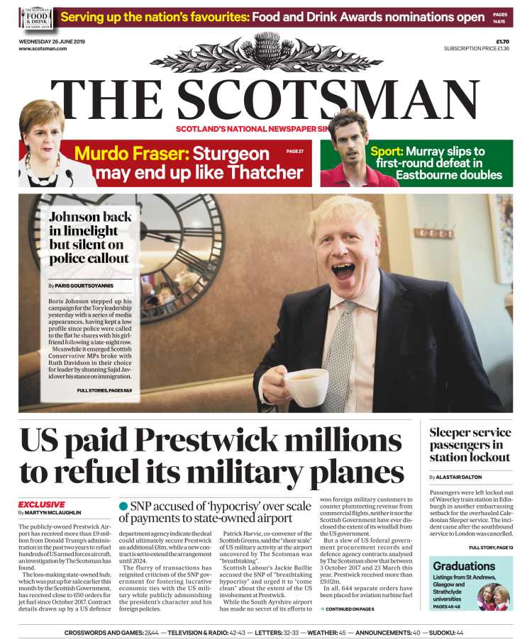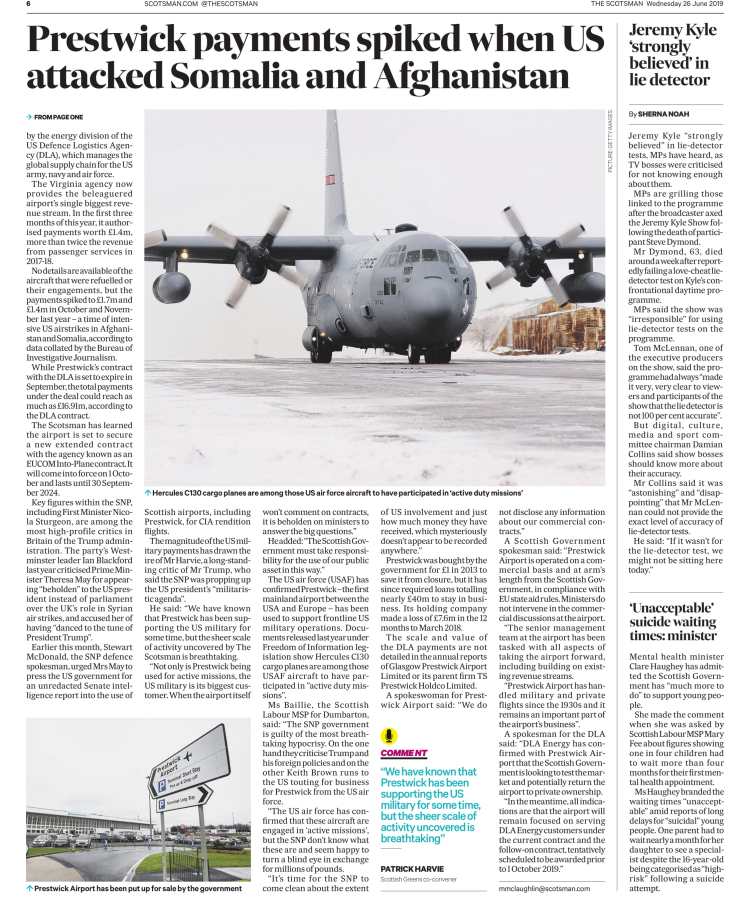 “Not only is Prestwick being used for active missions, the US military is its biggest customer. When the airport itself won’t comment on contracts, it is beholden on ministers to answer the big questions.”